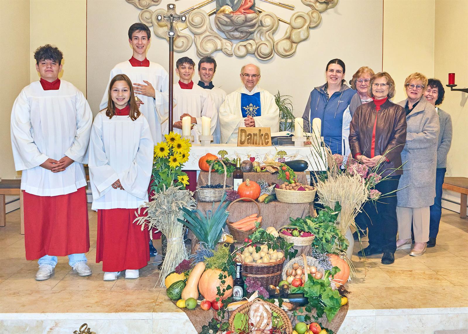 Seit vielen Jahren hat nun der Obst- und Gartenbauverein mit Roswitha Spießl an der Spitze diesen Part der Ausrichtung inne und lädt die Mitglieder zum weltlichen Fest ins Gasthaus Feil nach Weiding ein. Zuvor steht jedoch der Höhepunkt des Abends an, die Feier des Gottesdienstes in der Marienkirche mit Segnung der Erntegaben. So auch am vergangenen Freitag, als Pfarrer Franz Merl zusammen mit den Gläubigen die Abendmesse feierte. Im Vorfeld waren die Gartler bereits fleißig am Werkeln, um zusammen mit den Mesnerinnen Mariele Schönberger und Helga Meier wieder einen schönen Erntealtar im Weidinger Gotteshaus aufzubauen. Zudem wurde in der Heiligen Messe auch der verstorbenen Mitglieder des Vereins gedacht.